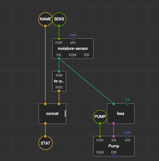 Nodes can be built from other nodes. The process is simple. Connect two or more existing nodes together and...you’re done. Use your newly created composite node as many times as you want. That’s how modularity is done in XOD.